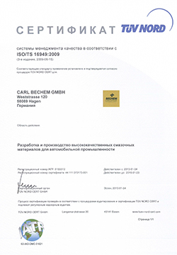 Качество нашей продукции подтверждается сертификацией в соответствии с автомобильными нормами ISO / TS 16949. Требования к нашим стандартным гарантируется так как постоянно осуществляется внутренний аудит и регулярные инспекции T?V NORD CERT GmbH.