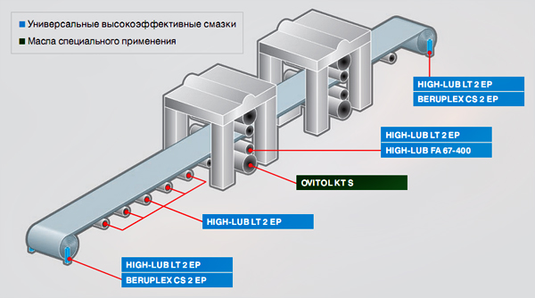 High-Lub LT 2 EP | Многоцелевая смазка с высокими противозадирными свойствами. Благодаря хорошим уплотнительным качествам и очень высокой защите от коррозии, этот продукт предназначен для применения (в среднем температурном диапазоне) в установках непрерывной разливки, а также в станах горячей и холодной прокатки. |